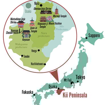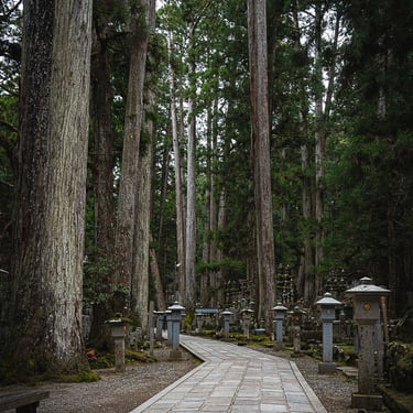 Situé dans la région montagneuse de la péninsule de Kii dans la préfecture de Wakayama, Koyasan abrite un ensemble de 117 temples. Parmi eux, le célèbre temple Okuno-i qui constitue une étape majeure pour les pélerins au cours ou à la fin de leur voyage. De plus, le site abrite le mausolée de leur protecteur, Kobo Daishi, qui y repose en état de méditation éternelle depuis plus de 1200 ans.