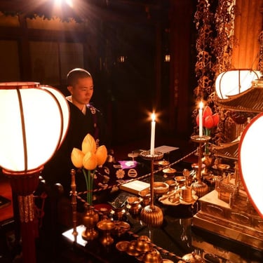 Mais il est raisonnable de ne pas veiller trop tard, car le lendemain matin le temple vous propose une dernière immersion dans la vie religieuse du temple : assister à l’office religieux du matin.