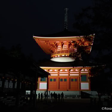 Après le dîner, j'ai décidé de me promener de nuit à Koyasan, donnant au complexe une atmosphère solennelle et mystique. Certains temples proposent également des visites guidées nocturnes du complexe, ainsi que des visites du cimetière d'Okunoin la nuit. D'autres offrent également des sessions d'écriture de sutra ou de méditation.
