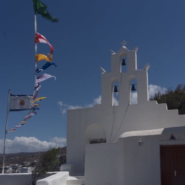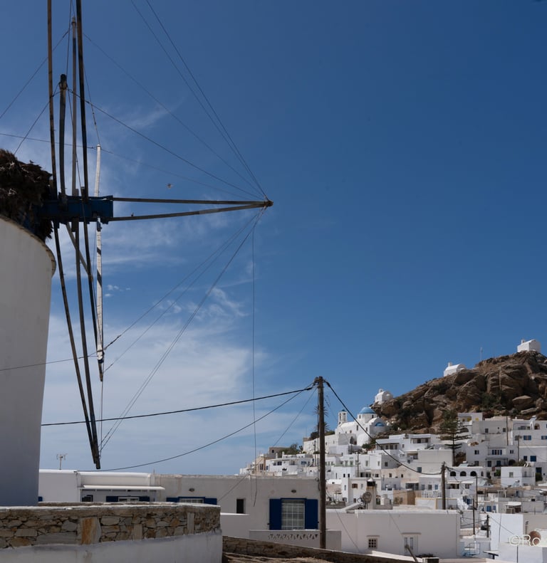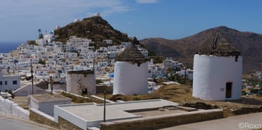 Enfin, pour une vue imprenable sur le Chora et le reste de l'île, grimpez jusqu'à son point culminant: la Chapelle Agios Nikolaos. Sur votre chemin, marquez un stop à l'ancienne forteresse byzantine ou encore l'amphithéâtre Odysseas Elytis. Sur la route qui mène à ce dernier, vous aurez la chance de contempler les célèbres et photogéniques moulins de Chora.