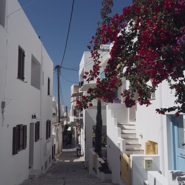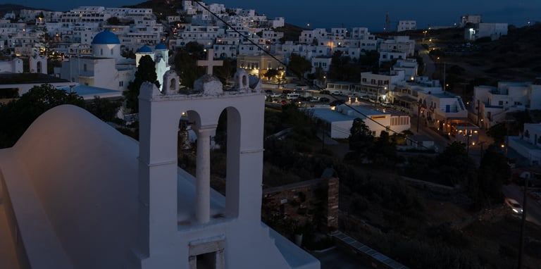 La découverte de l'île commence par le village de Chora au cœur d'Ios, avec ses maisons blanches et ses ruelles étroites. Le Chora est un concentré de vie (et de chats ;) où se mêlent boutiques locales, églises byzantines, restaurants traditionnels et cafés animés. Et vous souhaitez tester la cuisine traditionnelle et familiale, restaurez-vous à The Nest.