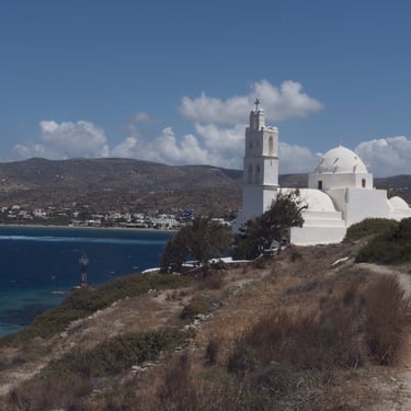 Mon coup de cœur n'est pas une plage à proprement parlé mais la côte au sud du port d'ios. En vous dirigeant vers le sud, vous pouvez rejoindre la charmante église d'Agia Irini, construite à quelques mètres de l'eau et surplombant la baie d'Ios.
