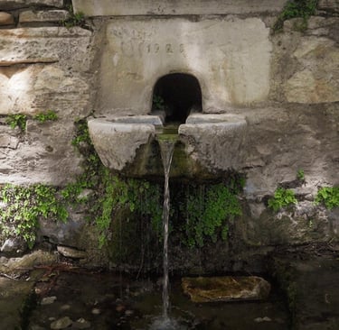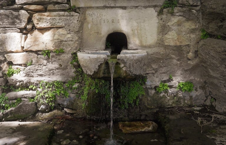 Un peu avant la fin de la descente, à une vingtaine de minutes de la grotte, vous trouverez la fontaine d’Arion, seul point d’eau et d’ombre de la randonnée. J’ai eu la sensation de revivre en arrivant là, toute suintante et essoufflée, sous le regard amusé de quelques locaux qui profitaient tranquillement du frais.